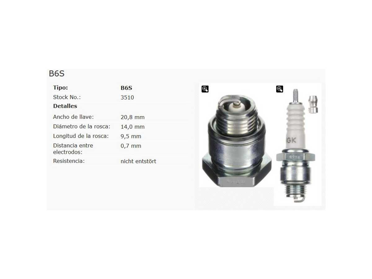 ¡Disponible sólo en Internet! Bujía original NGK B6S referencia 3510 Aumente
