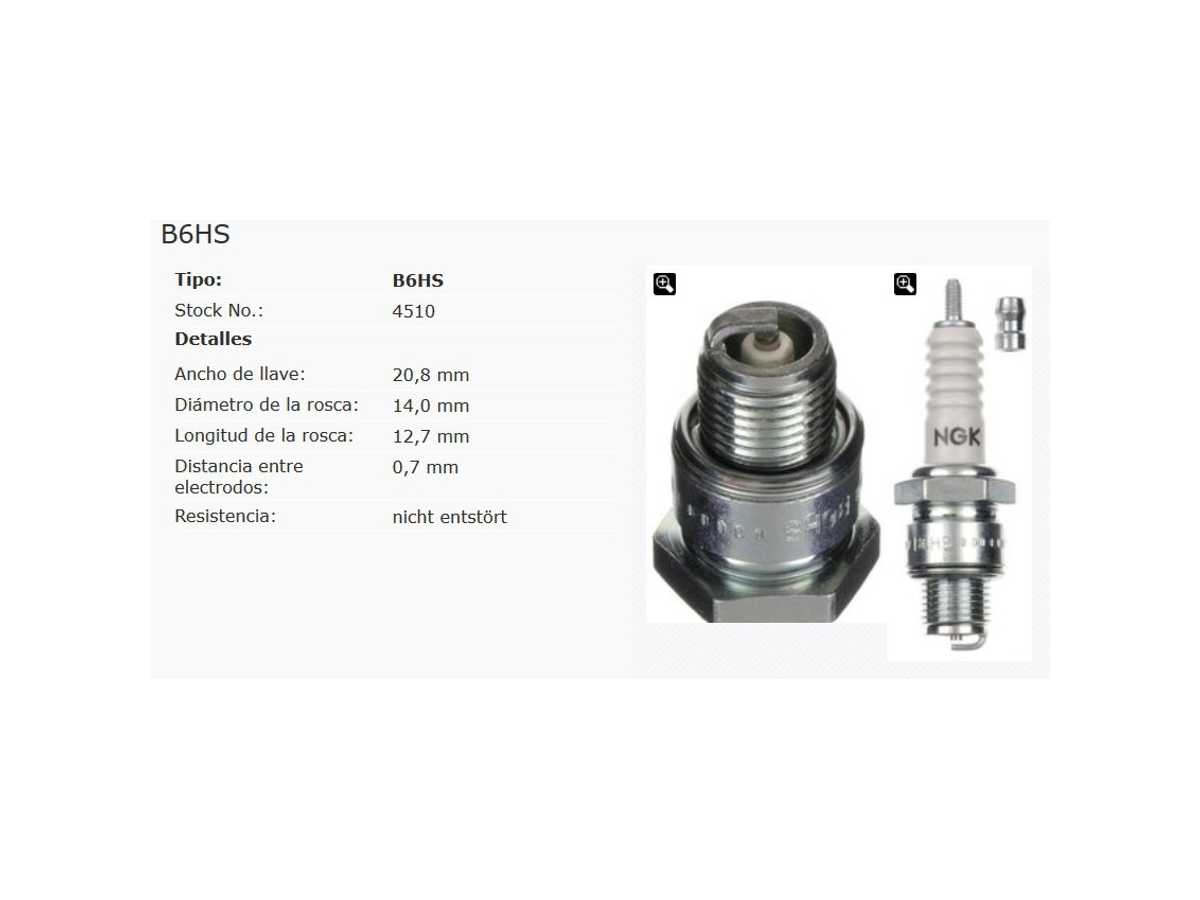 ¡Disponible sólo en Internet! Bujía original NGK B6HS referencia 4510 Aumente